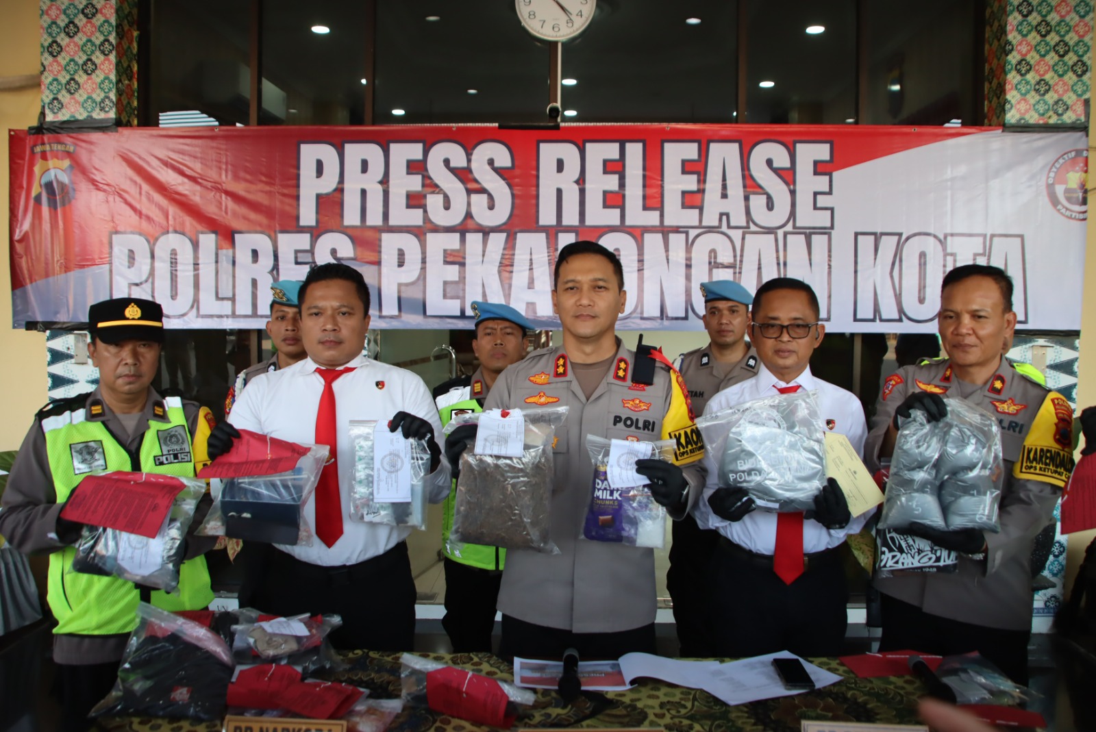 Kapolres Pekalongan Kota AKBP Riki Yariandi, S.H., S.I.K., M.H. didampingi Kabagops Kompol Paryudi, Kasat Reskrim AKP Setiyanto, Kasat Resnarkoba AKP Iwan Sujarwadi, Ps. Kasi Humas Iptu Purno dan Kasi Propam AKP Ali Sunyoto, mengungkapkan bahwa selama pelaksanaan operasi tersebut, jajarannya berhasil mengungkap sejumlah kasus yang berkaitan dengan penyakit masyarakat, diantaranya peredaran bahan peledak serta tindak pidana narkotika.