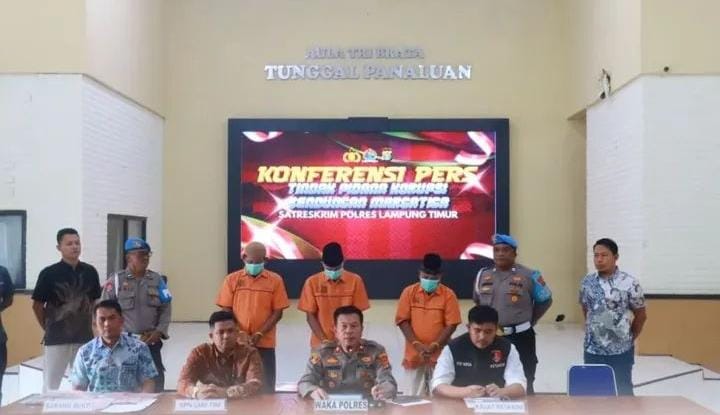 LAMPUNG – Satuan Reserse Kriminal Polres Lampung Timur berhasil mengamankan tiga tersangka dalam kasus dugaan tindak pidana korupsi proyek Bendungan Marga Tiga.