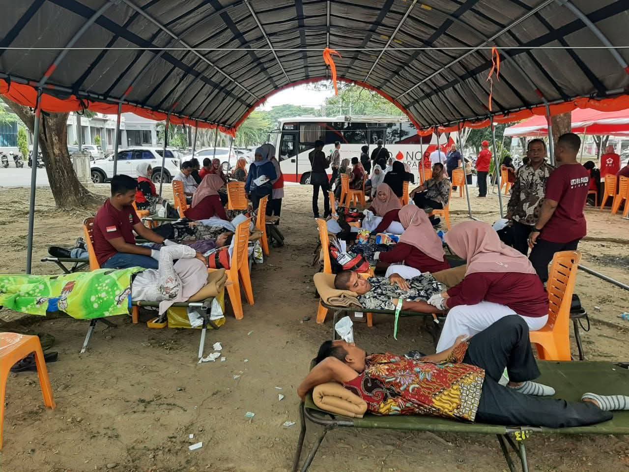 Sejak pagi, lokasi kegiatan sudah dipadati warga yang mendaftar untuk menjadi pendonor. Mereka menjalani pemeriksaan kesehatan sebelum melakukan donor darah.