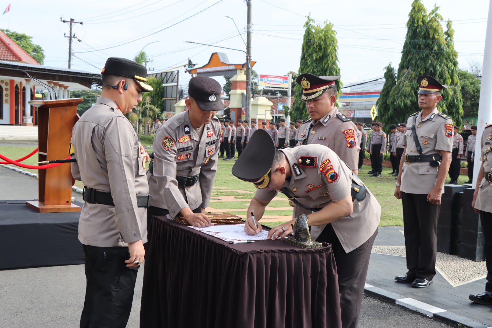 Selanjutnya, dilakukan serah terima jabatan untuk jabatan Kasat Samapta Polres Kebumen dari AKP Sigit Prsatyanto kepada AKP Edy Winawan, yang sebelumnya menjabat sebagai Kapolsek Sadang.