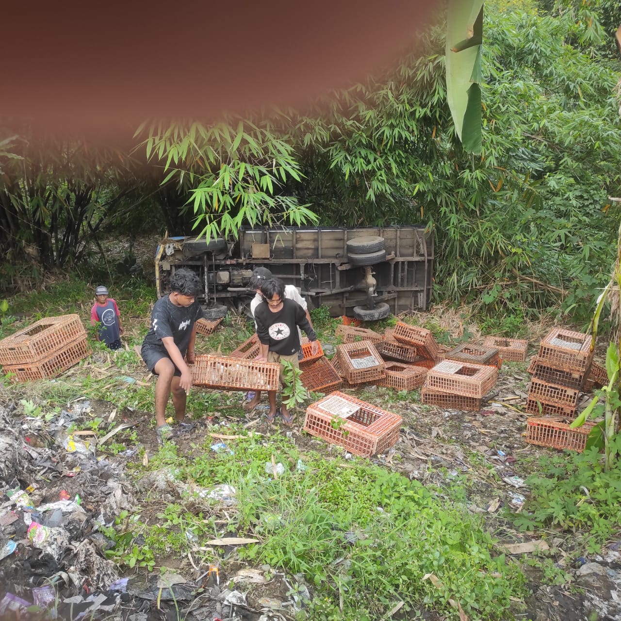 Proses evakuasi kendaraan dan ratusan ekor ayam yang sempat berhamburan telah ditangani oleh petugas bersama warga.