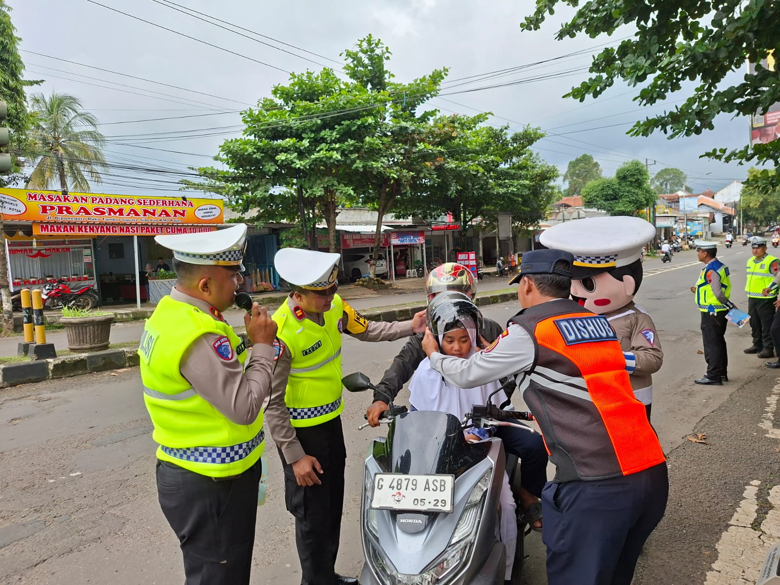 PEKALONGAN – Indonesia investigasi.com – Polres Pekalongan – Polda Jateng – Ada pemandangan berbeda di kawasan Tugu 0 KM Sibedug Kajen, Rabu (11/2/2026) siang. Jajaran Satlantas Polres Pekalongan bersama Dishub Kabupaten Pekalongan mencegat sejumlah pengendara yang melintas. Bukan untuk menilang, petugas justru membagi-bagikan helm gratis kepada warga.