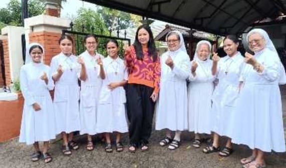 LAMPUNG – Senator Almira Nabila Fauzi.B.Bus.Com.,M.I.Kom saat bersilahturahmi Natalan di Provinsialat Suster FSGM, Rabu (25/12/2024). menyempatkan waktu mengunjungi Griya Anselma yang berada satu gedung dengan Provinsialat Suster FSGM Pringsewu.