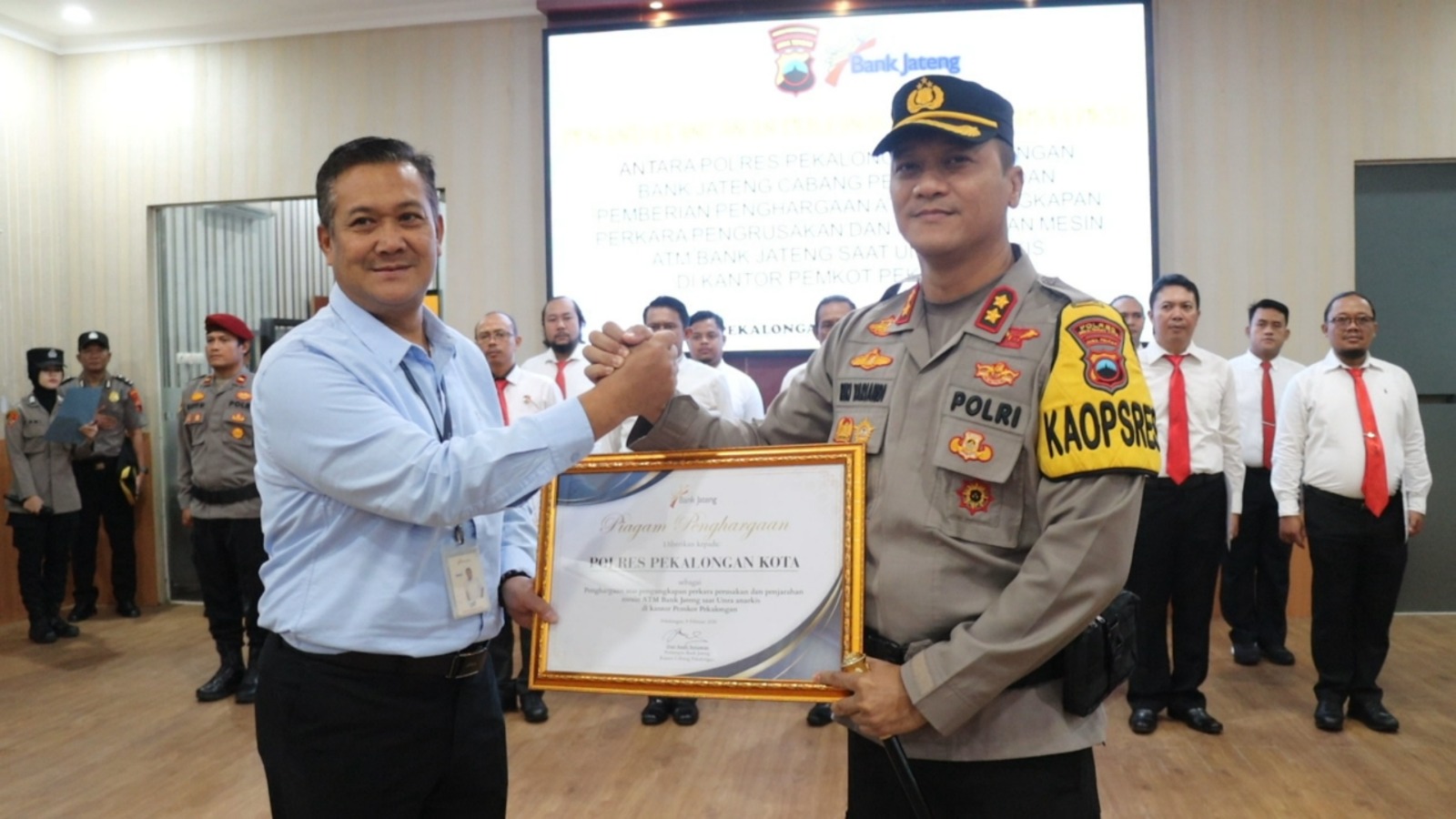 PEKALONGAN KOTA – Indonesia investigasi.com – Polres Pekalongan Kota – Polda Jateng – Polres Pekalongan Kota mendapatkan penghargaan dari PT Bank Jateng Cabang Pekalongan atas keberhasilan pengungkapan kasus pengrusakan dan penjarahan mesin ATM Bank Jateng saat unjuk rasa anarkis di Kantor Pemkot Pekalongan Agustus 2025 lalu.