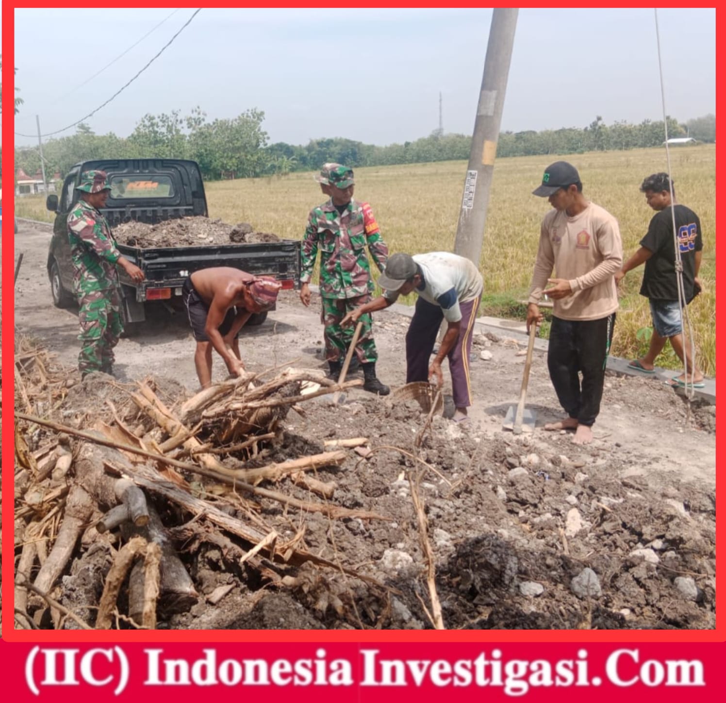 SRAGEN, JATENG — Sertu Sutardi Babinsa Desa Nganti Koramil 15/Gemolong Kodim 0725/Sragen melakukan pembereman jalan di Dk.Kemetiran RT.12 Desa Nganti. Kegiatan ini bertujuan untuk memperbaiki akses jalan yang rusak dan membahayakan pengguna jalan, serta meningkatkan keamanan dan kenyamanan warga.