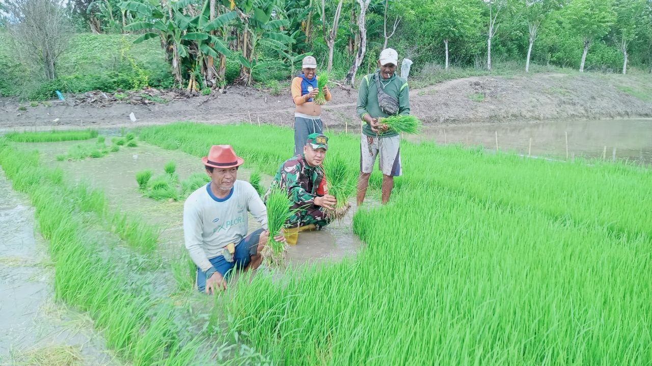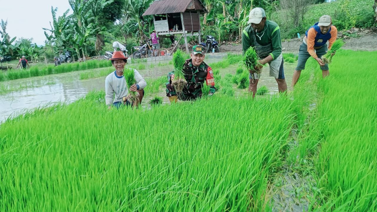 Babinsa Koramil 1420-03/Marittengae Turun Ke Sawah Bantu Petani Cabut Bibit Padi