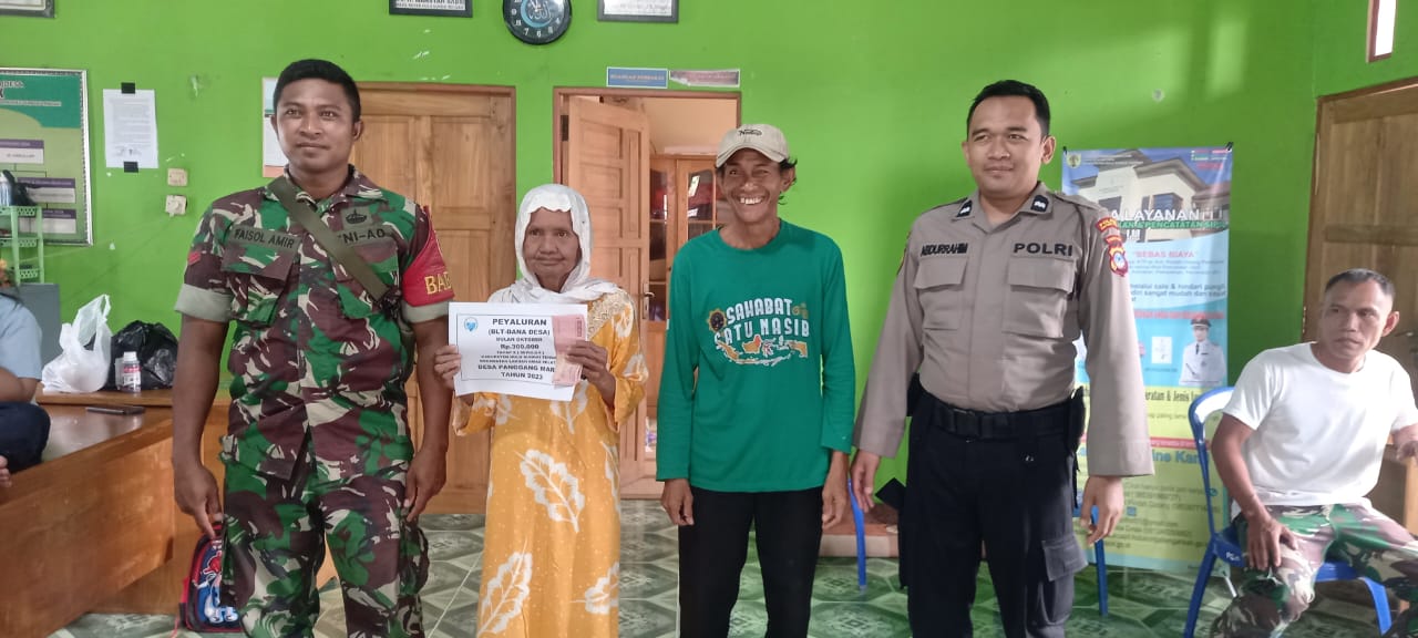 Barabai, Kalimantan Selatan – Anggota Koramil 1002-4/Labuan Amas Selatan, Koptu Faisol, melakukan pendampingan pada penyaluran Bantuan Langsung Tunai (BLT) Dana Desa (DD) di Desa Panggang Marak, Kecamatan Labuan Amas Selatan, Kabupaten Hulu Sungai Tengah pada Senin (13/12/2023).