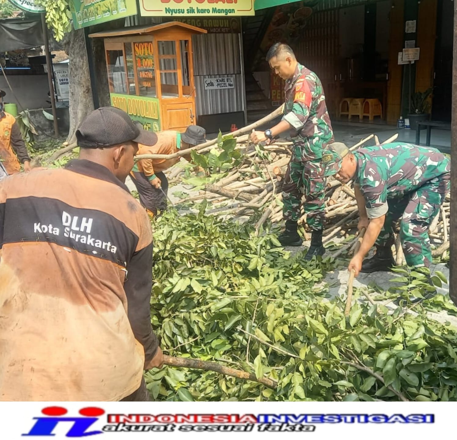 Surakarta – Babinsa Kelurahan Bati Wanmil Mangkubumen Koramil 02/Banjarsari Kodim 0735/Surakarta Serda Sodiq bersama dengan Bati Wanwil Serma Sujianto dan team saberling serta dibantu Bhabinkamtibmas kelurahan Mangkubumen melaksanakan Gotong royong pemangkasan ranting dan pohon yang menutupi jalan bertempat di sepanjang Jln.M.T Haryono, Kelurahan Mangkubumen, Kecamatan Banjarsari, Jum’at (27/09/2024).