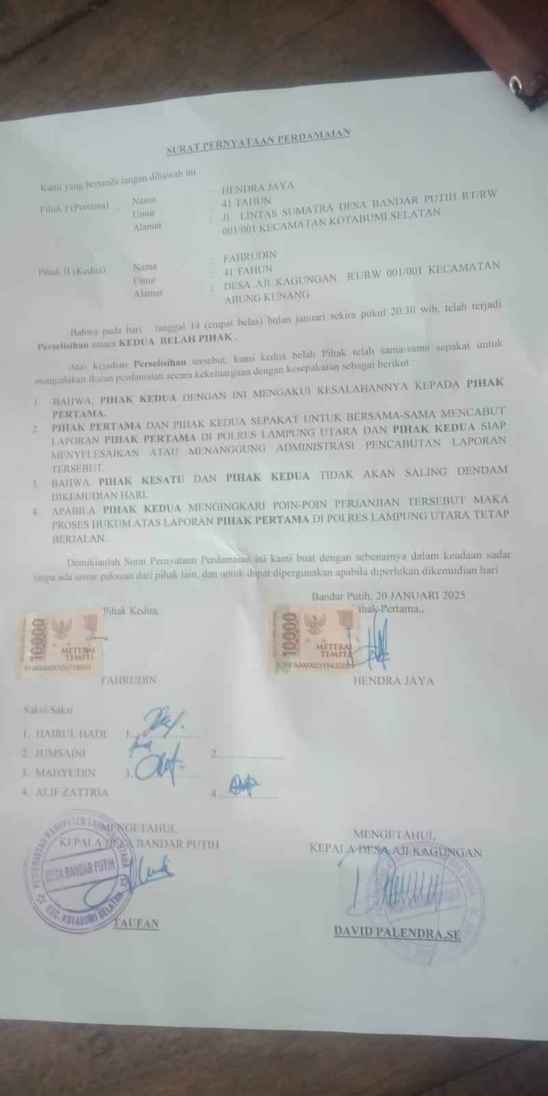 Kegiatan ini diakhiri dengan penandatanganan surat pernyataan damai oleh kedua belah pihak.