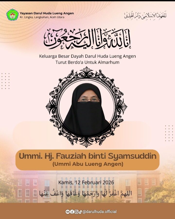 ACEH UTARA – Kabar duka menyelimuti keluarga besar Dayah Darul Huda Lueng Angen, Kecamatan Langkahan, Kabupaten Aceh Utara. Ummi Hj. Fauziah binti Syamsuddin, yang merupakan Ummi dari almarhum Abu Lueng Angen, telah berpulang ke rahmatullah pada Kamis,12/02/2026.