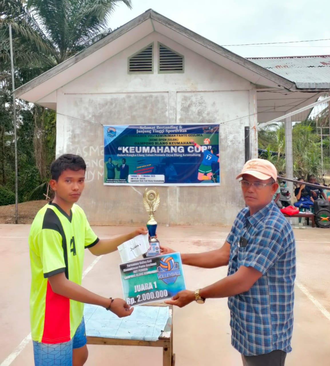 Penyerahan piala dilakukan oleh m Nasir selaku Keuchik Gampong Blang Keumahang Julok Aceh Timur.