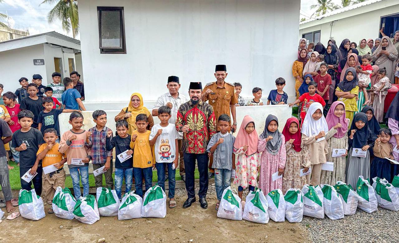 ACEH TIMUR – Iskandar Usman Al-Farlaky selaku Bupati Aceh Timur menggelar kegiatan sosial dengan membagikan paket sembako serta menyantuni anak yatim di hunian sementara (huntara) Gampong Blang Nie, Kecamatan Simpang Ulim, Selasa (3/3/2026).