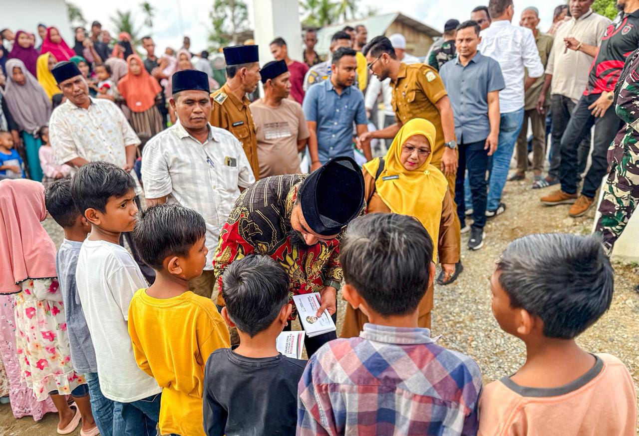 Acara yang berlangsung di huntara Gampong Blang Nie, Kecamatan Simpang Ulim ini turut dihadiri unsur pemerintah daerah, perangkat gampong, serta masyarakat setempat. Kehadiran Bupati beserta rombongan disambut hangat oleh warga yang telah menantikan perhatian dan bantuan tersebut.