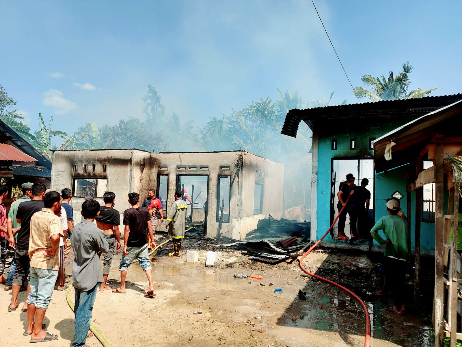 BIREUEN – Musibah kebakaran menghanguskan dua unit rumah konstruksi permanen beratap seng di Dusun Mesjid, Desa Cot Bada Baroh, Kecamatan Peusangan, Kabupaten Bireuen, Jumat (23/1/2026) sekitar pukul 10.00 WIB.