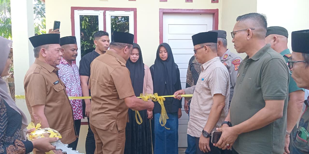 BIREUEN – Haru mewarnai suasana di Dusun Tgk Adam, Gampong Teupin Siron, Kecamatan Gandapura, Selasa (30/9/2025) pagi. Bupati Bireuen, H. Mukhlis ST, menyerahkan kunci rumah layak huni permanen berukuran 5 x 7 meter kepada empat bersaudara anak yatim yang ditinggal ayahnya tiga tahun lalu, dan kini ditingalkan pula oleh ibunya, Ribut Setia Ningsih (49), karena memilih ikut bersama suami barunya.