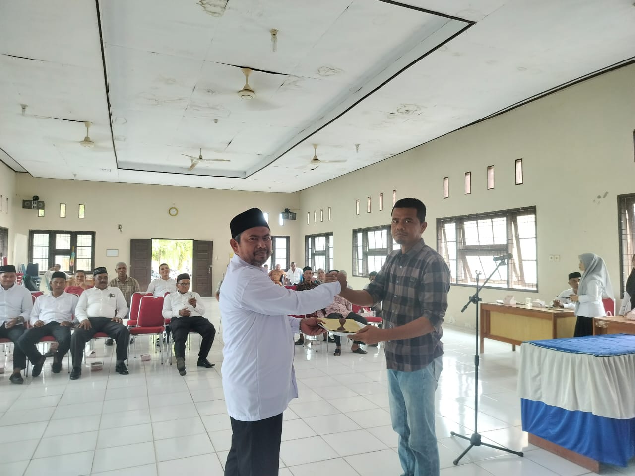 LHOKSUKON – Camat Nibong Zulfikar.S.Sos Kembali Mengambil Sumpah dan melantik Tuha Peut Gampong Nibong Baroh Periode 2025 – 2031 di Aula Kantor Camat Setempat, pada Rabu 3 September 2025.