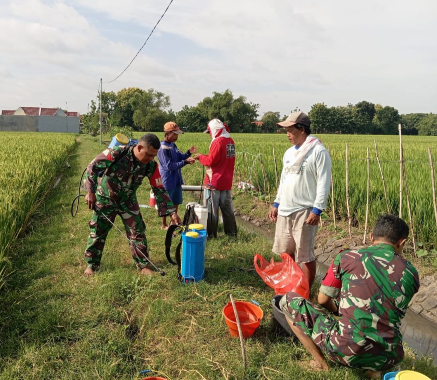 SRAGEN, JATENG — Suasana pagi di Dk.Sendang Rt.10 Desa Kalangan Kecamatan Gemolong diwarnai dengan semangat gotong royong. Para petani tampak sibuk melakukan penyemprotan pestisida pada tanaman padi mereka. Tak sendiri, mereka didampingi oleh Serda Agus JP beserta dua orang Babinsa Koramil 15/Gemolong Kodim 0725/Sraen, Rabu ( 05/02/2025 )