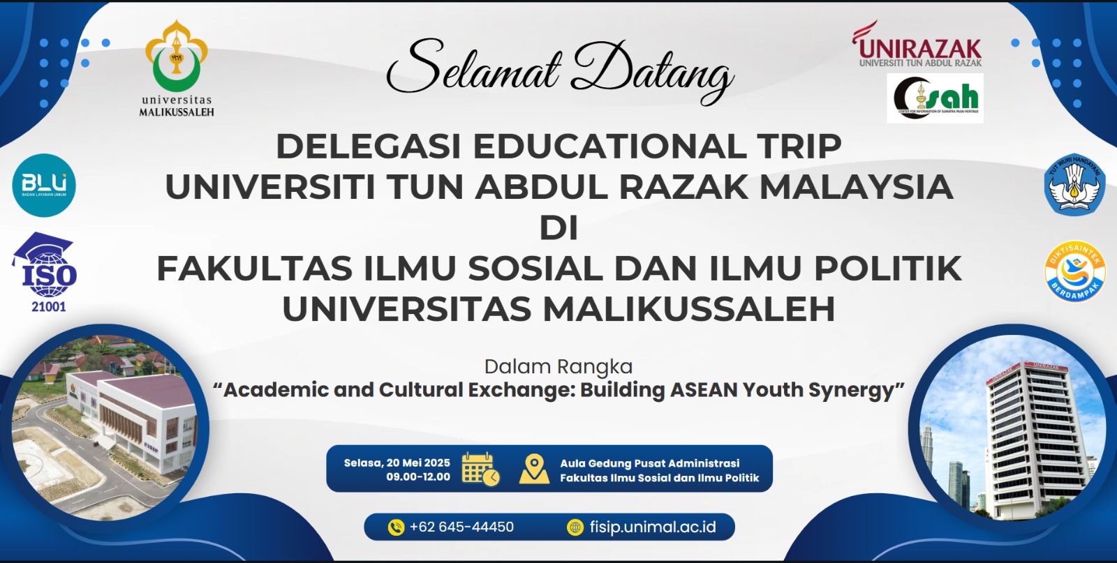 Fakultas Ilmu Sosial dan Ilmu Politik (FISIP) Universitas Malikussaleh menyambut hangat kunjungan mahasiswa dari University Tun Abdul Razak (UNIRAZAK) Malaysia dalam program Educational Trip, yang menjadi bagian dari inisiatif pertukaran akademik dan budaya antara Indonesia dan Malaysia di lingkup ASEAN.