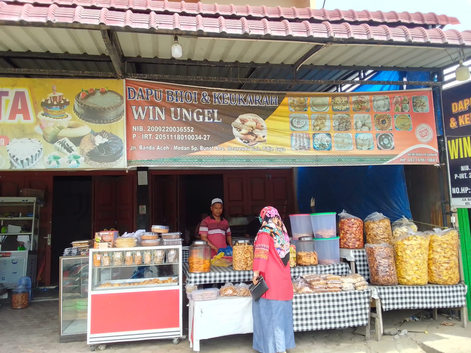 Dapur Kue “WIN UNGEL” Satu-satunya di Pidie Jaya yang berlokasi Jalan Banda Aceh-Medan sebelah barat laut dari pada kantor Partai Aceh ( PA ) Wilayah Pidie Jaya. Simpang Beunot. Kec Meureudu, Kab Pidie Jaya.