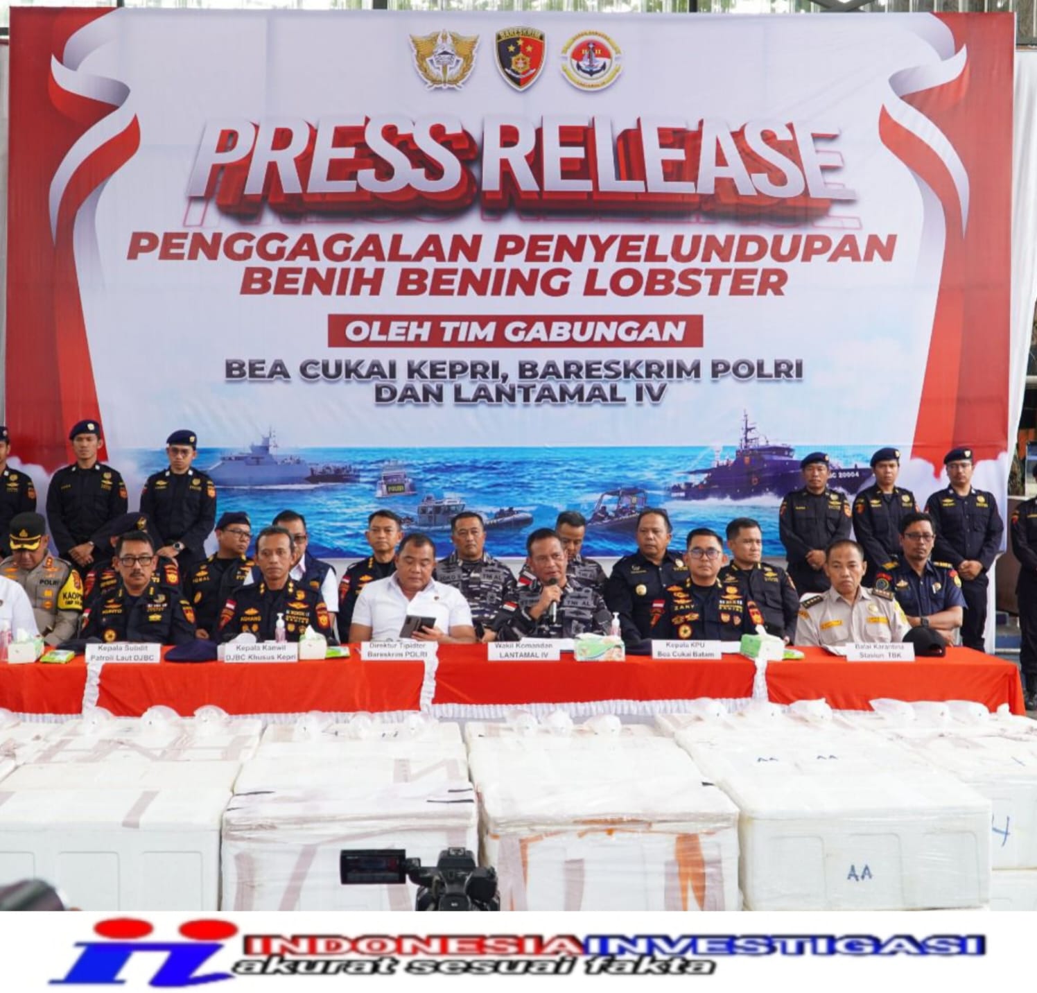 Batam — Tim Gabungan Bareskrim Polri bersama Kanwilsus DJBC Kepri, dan Lantamal IV Batam berhasil menggagalkan upaya penyelundupan benih bening lobster yang yang terjadi di Perairan Berakit, Kabupaten Bintan, Kepulauan Riau. Hal ini disampaikan oleh Dirtipidter Bareskrim Polri Brigjen Pol Nunung Syaifuddin, S.I.K., M.M., didampingi Kakanwil DJBC khusus Kepri Adhang Noegroho Adhi, pada saat konferensi Pers di Kantor DJBC Khusus Kepri Kabupaten Karimun. Kamis (17/10/2024).