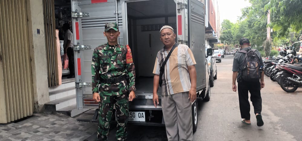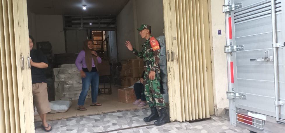 Surakarta, Jawa Tengah – Sertu Hidayat Kurniawan, Babinsa Kelurahan Sudiroprajan Koramil 04/Jebres Kodim 0735/Surakarta, melaksanakan patroli sambil berkomunikasi sosial dengan karyawan toko plastik Sederhana di Jl. Urip Sumoharjo, Kelurahan Sudiroprajan, Kecamatan Jebres, pada Selasa (12/12/2023).