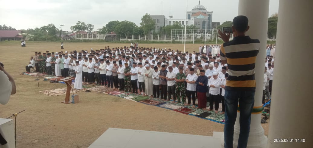 “Shalat ini kita lakukan karena kondisi lahan pertanian sudah mulai kering, sementara petani akan segera memasuki masa tanam. Alhamdulillah, hujan pun turun saat kita sedang melaksanakan shalat,” ujar Bupati H. Mukhlis.