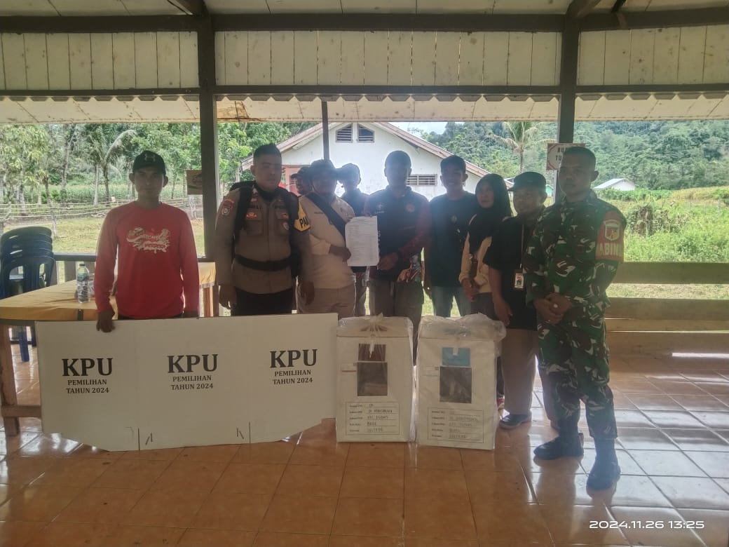 Aiptu Syarif bersama Brigpol Murdianto Sasikil, Personel Polsek Momunu melaksanakan pengamanan (PAM) TPS di Desa Kokobuka tepatnya TPS 4 Dusun Nanasan serta TPS 5 Dusun Kalaka ini mengawal Logistik Pilkada 2024 menuju TPS.