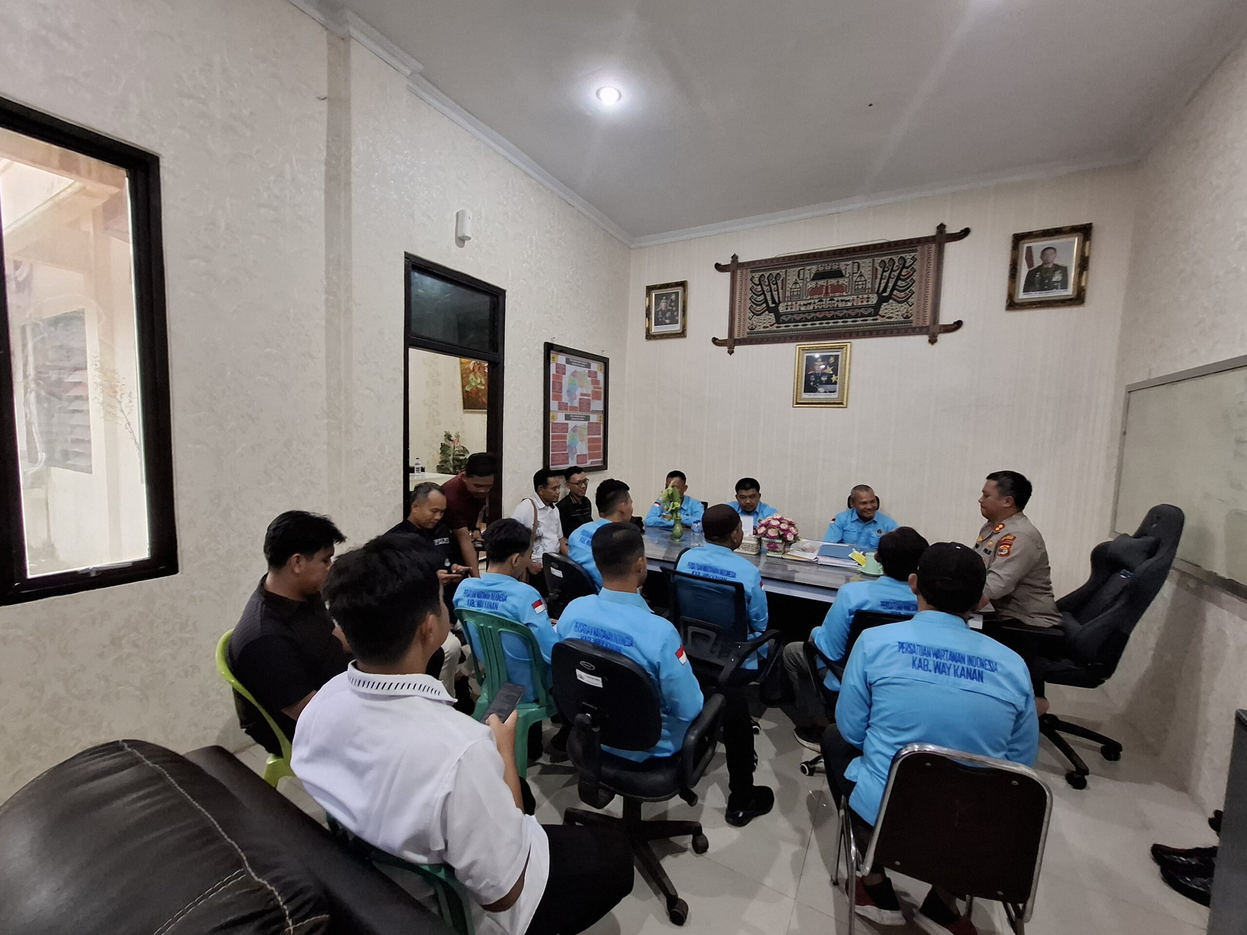 Way Kanan – malam pertemuan pertama yang digelar di ruang kerja Kapolres bersama PWI tersebut Kapolres Way Kanan AKBP Adanan Mangopang menyampaikan sangat mengapresiasi dan berterima kasih kepada rekan-rekan sekalian dalam penyebarluasan informasi.