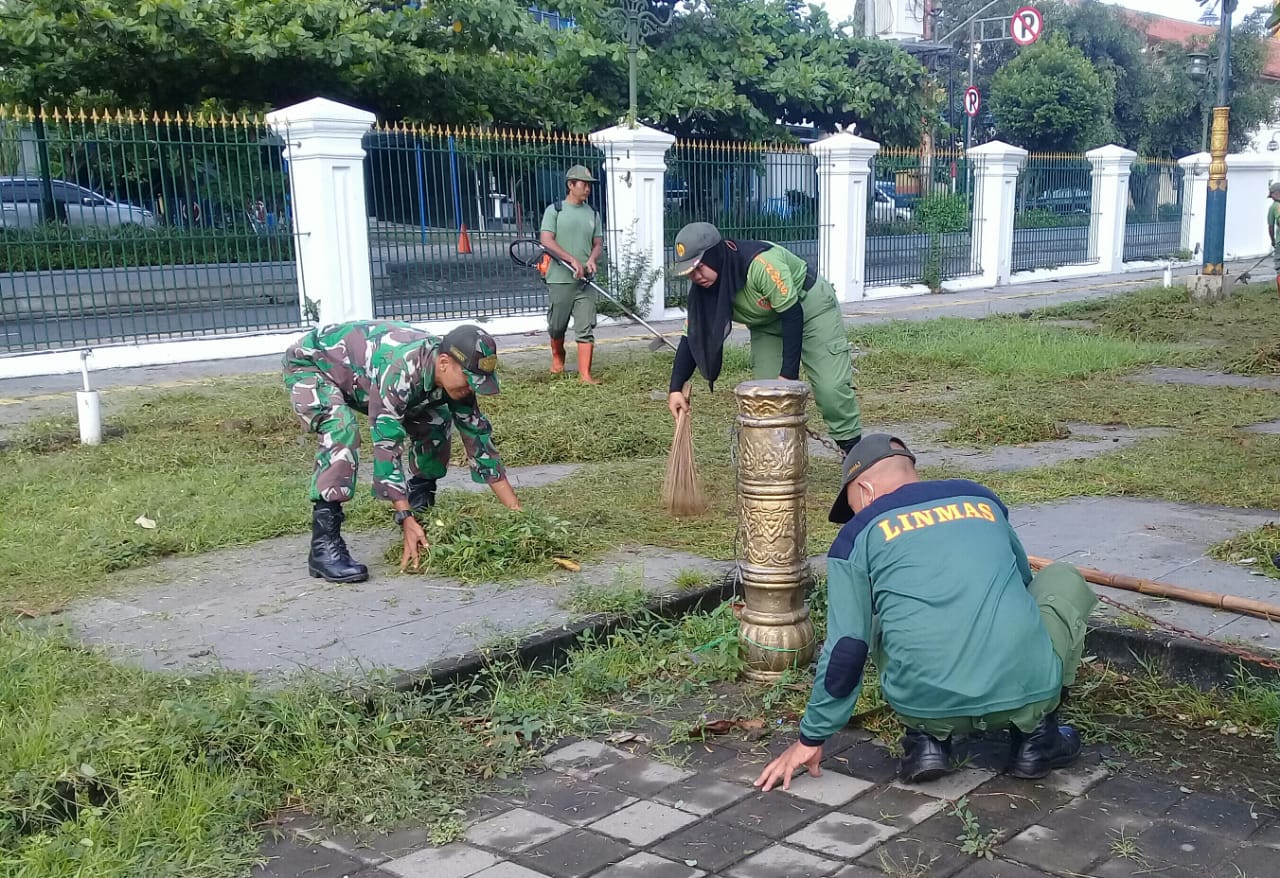 “Dengan menggunakan sapu lidi dan peralatan kebersihan lainnya, kami bersama-sama bergotong royong membersihkan sampah dan rumput-rumput liar di lapangan Pamedan Puro Mangkunegaran sehingga kondisi lapangan tersebut terpelihara kebersihannya.”pungkas Serka Daniel.