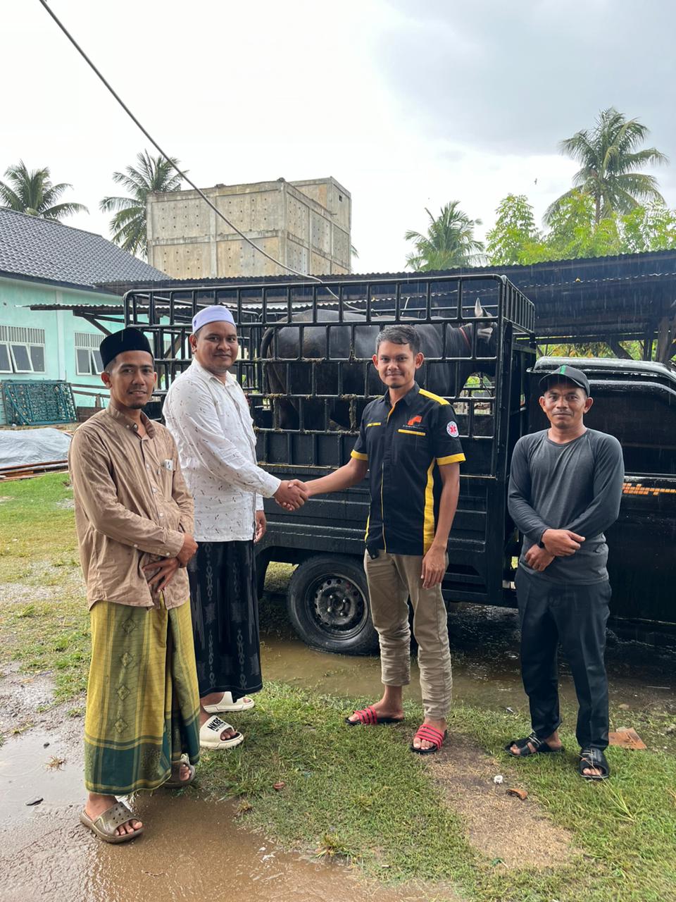 Pengantaran dan penyerahan sapi tersebut diwakili oleh Rahmat T Geurugok, yang datang membawa amanah dan salam dari H. Mukhlis. Sapi sedekah tersebut diterima langsung oleh Tgk. H. Muksalmina, yang akrab disapa Abana Muksalmina, Putra dari Abon Arongan.