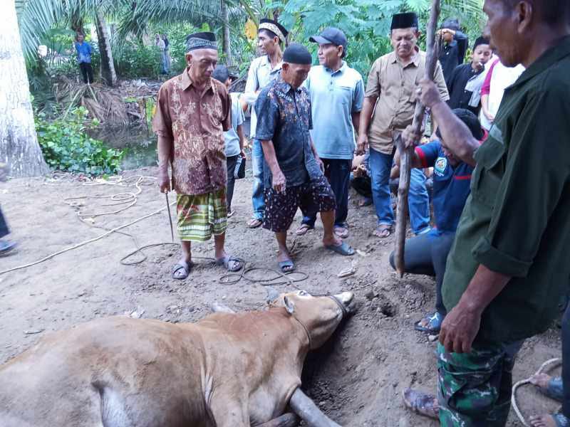 Kata Datok Ramadhani, untuk proses penyembelihan hewan Qurban 5 ekor lembu dan 3 ekor kambing di Mushalla Dusun Alur Pinang dan 1 ekor lembu di Mushalla Dusun Purwodadi atau dikenal sebutan Blok 11.