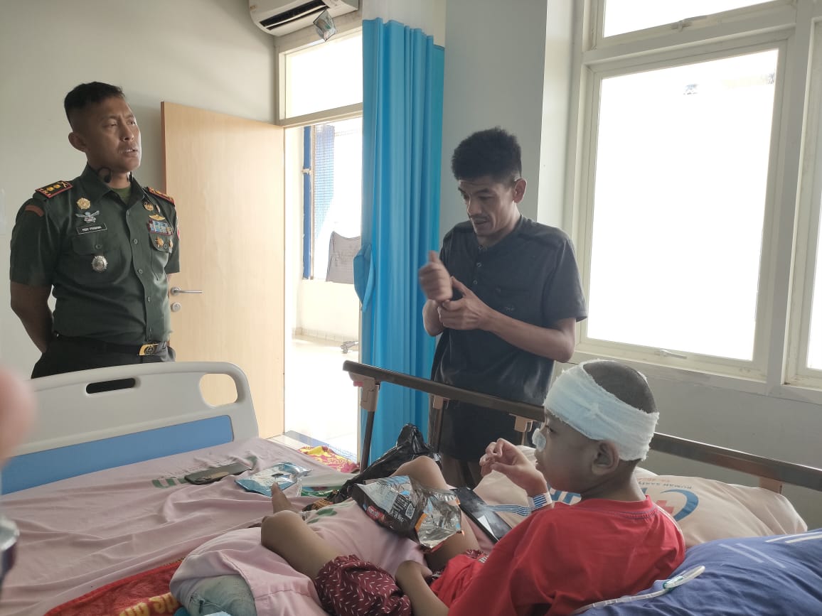 Barabai, – Komandan Kodim 1002 Hulu Sungai Tengah (HST) Letkol Inf Fery Perbawa mengunjungi dan memberikan motivasi kesembuhan bagi ananda Muhamad Aufa Syafiq (12) putra dari Sertu Epip Abdul Muplih anggota Koramil 1002-04/Labuan Amas Selatan yang dirawat di RS. Damanhuri Barabai . Senin (02/09/2024).