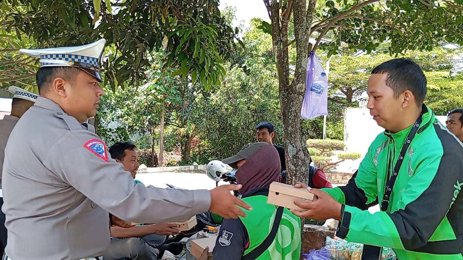 “Dengan jumat berkah ini kami ingin berbagi kepada masyarakat terutama yang membutuhkan dan sedikit meringankan beban harian mereka,” terang Kasat Lantas.