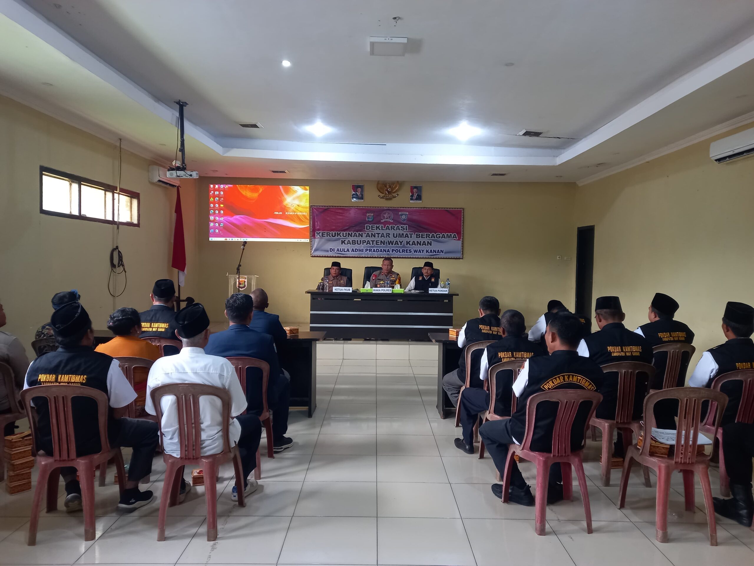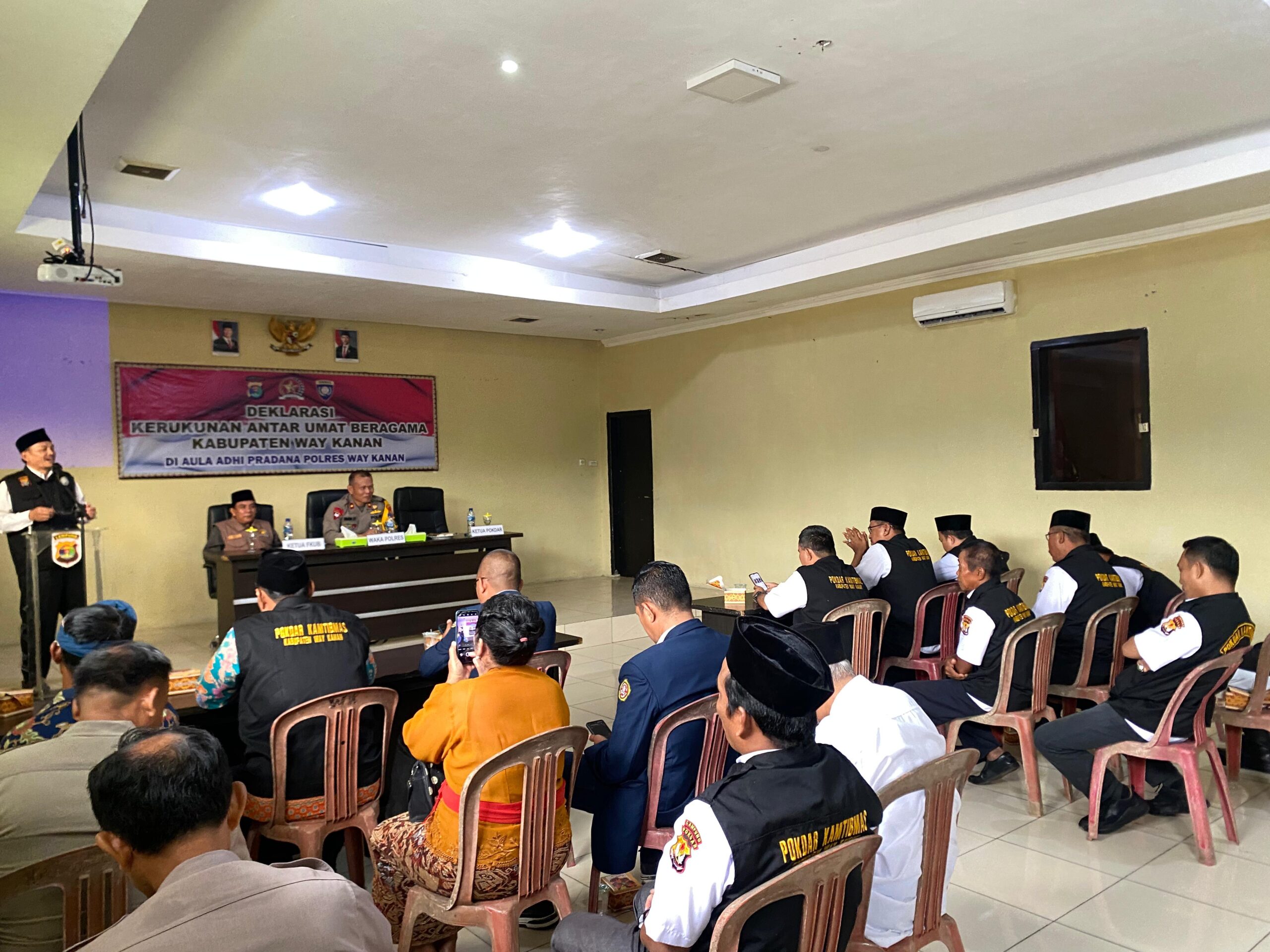 Kegiatan dihadiri Wakapolres Way Kanan Kompol Iwan Setiawan, Kasatbinmas AKP Sundoro, Ketua FKUB Kabupaten Way Kanan Syahrul Muharomi, Ketua Pokdar Kamtibmas KH Abud Nursyihab dan pengurus Pokdar Kamtibmas (kelompok sadar keamanan dan ketertiban masyarakat) se-Kabupaten Way Kanan, Ketua Karang Taruna Kabupaten Way Kanan A. Chandra Kurniawan,, perwakilan Tokoh Lintas Agama dan anggota Satbinmas Polres Way Kanan.