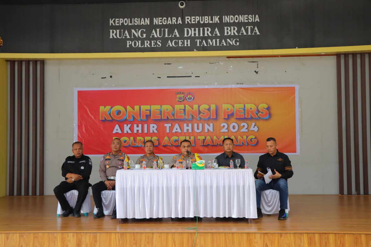 Acara kilas balik Capaian Tugas penegakan hukum Polres Aceh Tamiang 2024 tersebut dilaksanakan di Aula Dhira Brata Mapolres Aceh Tamiang, Sabtu 28 Desember 2024.