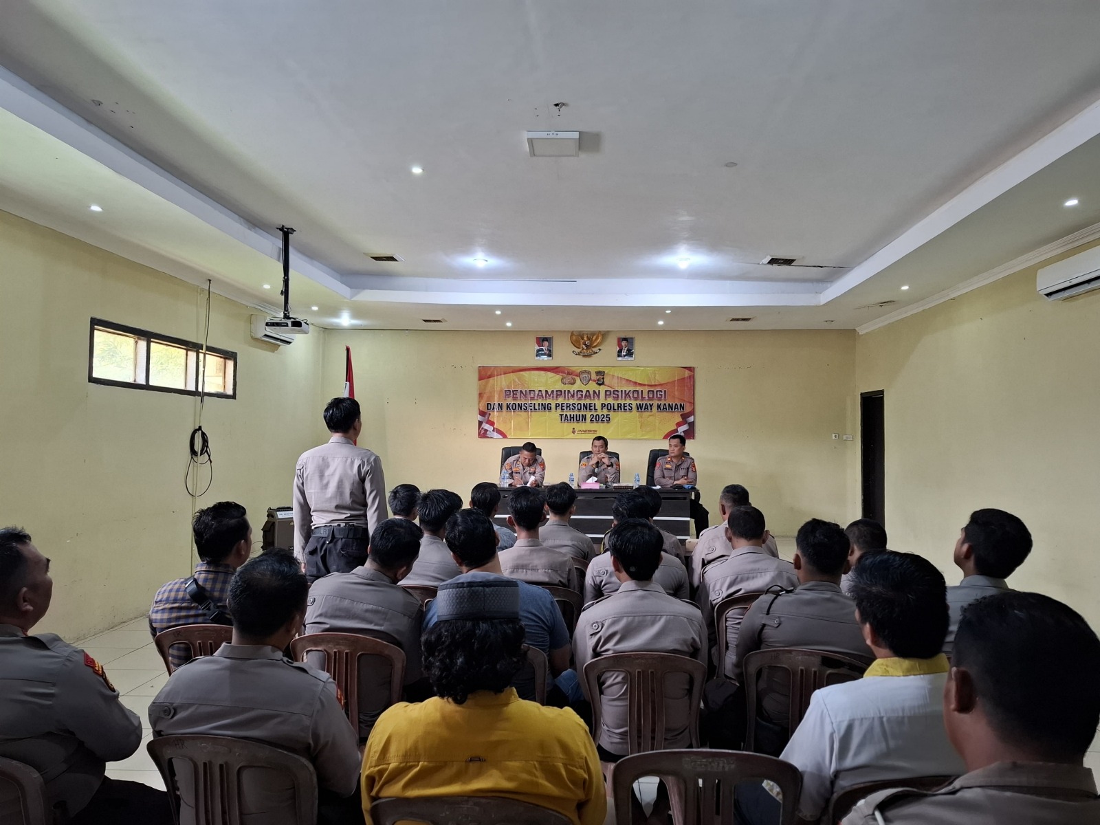 Dalam rangka memperbaiki mental personel Polres Way Kanan untuk menjadikan Abdi Negara yang bertanggung jawab kepada Negara guna memberikan perlindungan, pengayoman, dan pelayanan kepada masyarakat. Kapolres Way Kanan AKBP Adanan Mangopang melaksanakan kegiatan pendampingan psikologi, konseling dan arahan kepada personel Polres Way Kanan di aula Adhi Pradana Polres Way Kanan. Sabtu (08/02/2025).