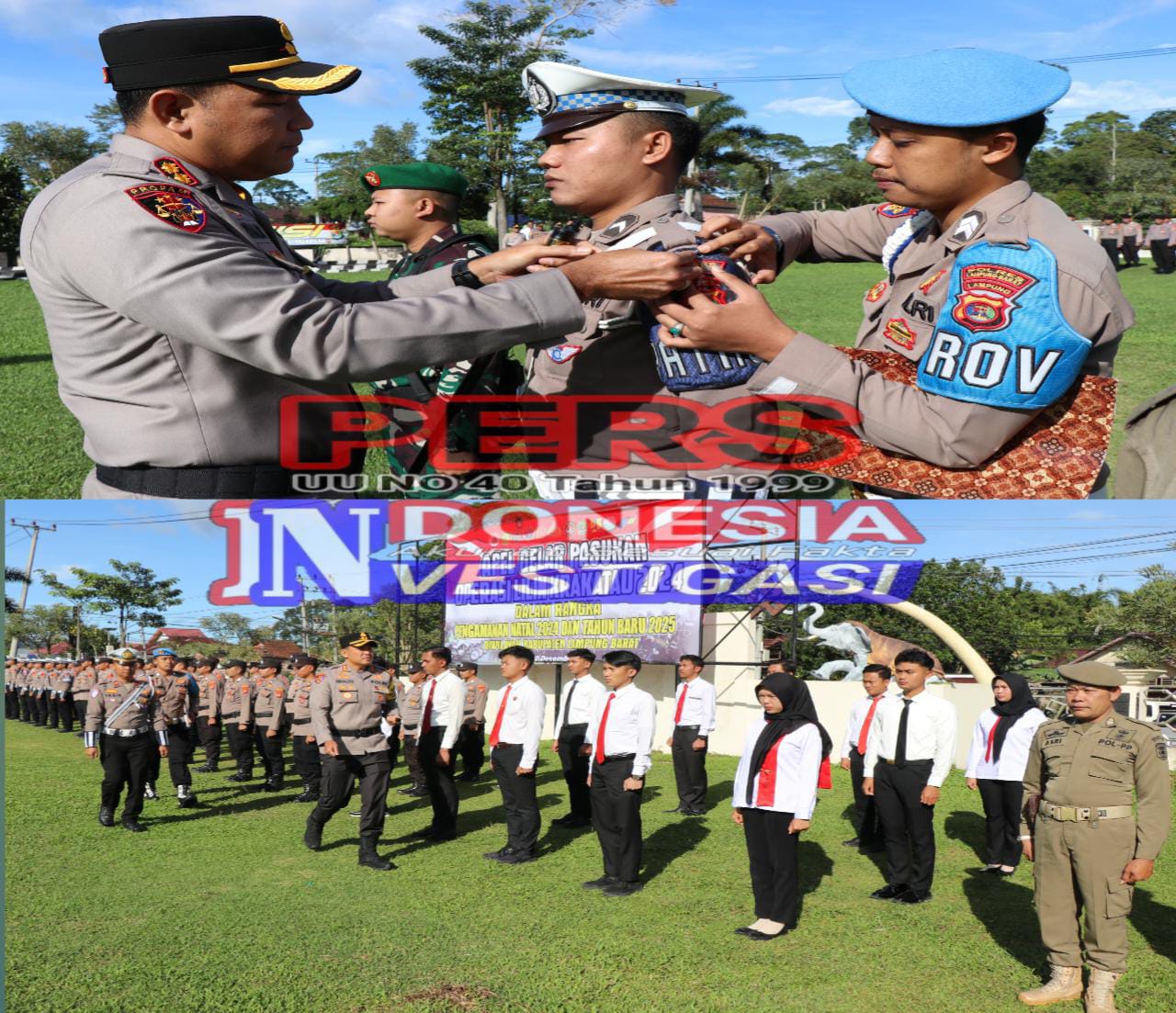 Kapolres Lampung Barat AKBP Rinaldo Aser,S.H.,S.Ik.,M.Si.membacakan amanat Kapolri mengatakan Operasi Lilin Krakatau 2024 dilakukan guna mengamankan jalannya perayaan Natal dan Tahun Baru.