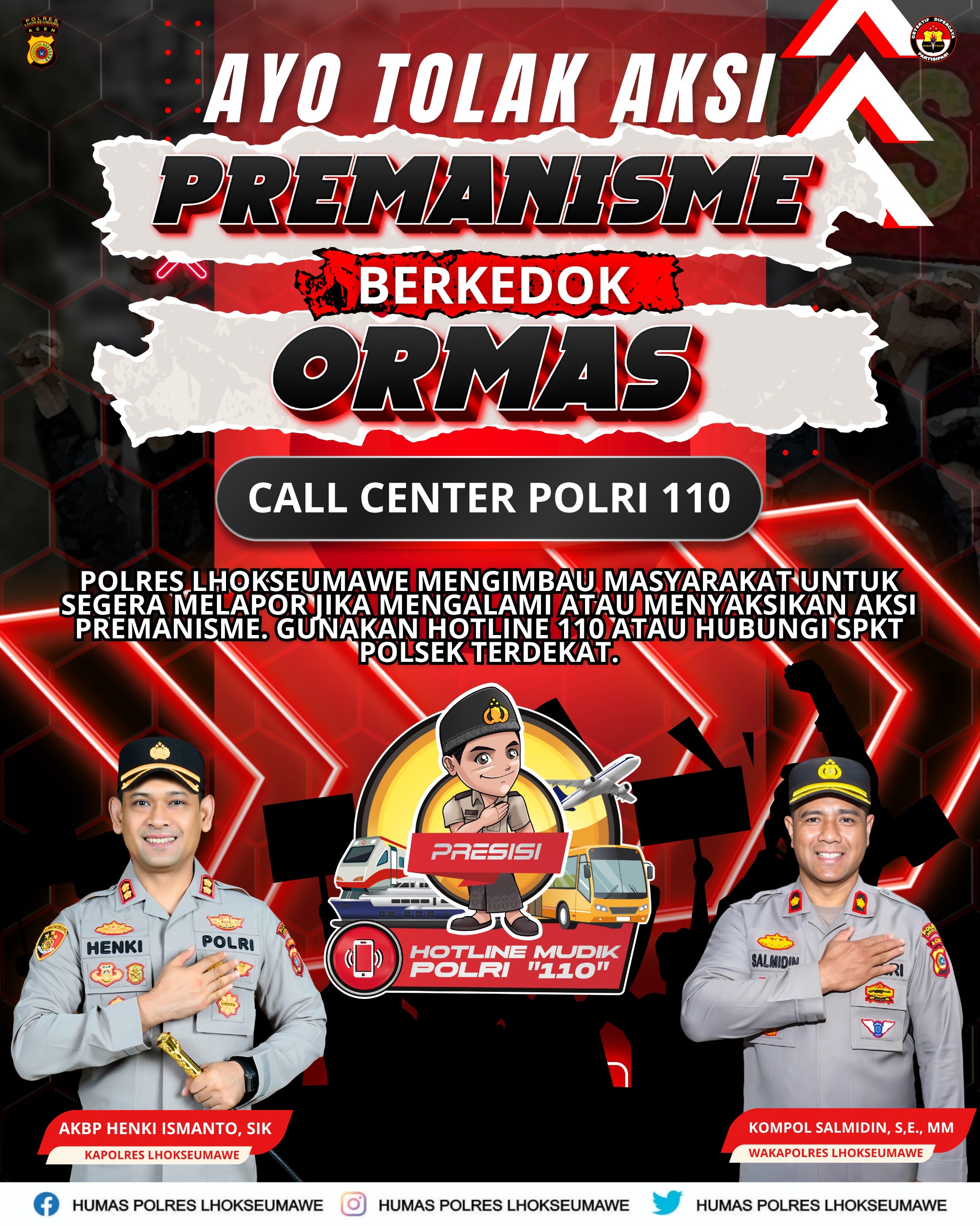 Kapolres menjelaskan bahwa Polres Lhokseumawe mengedepankan langkah preventif dan preemtif dalam menangani kasus-kasus premanisme. Pihaknya aktif melakukan sosialisasi, pembinaan, serta koordinasi dengan berbagai pihak guna meningkatkan kesadaran masyarakat dan pelaku usaha agar lebih waspada terhadap modus pemerasan berkedok ormas.