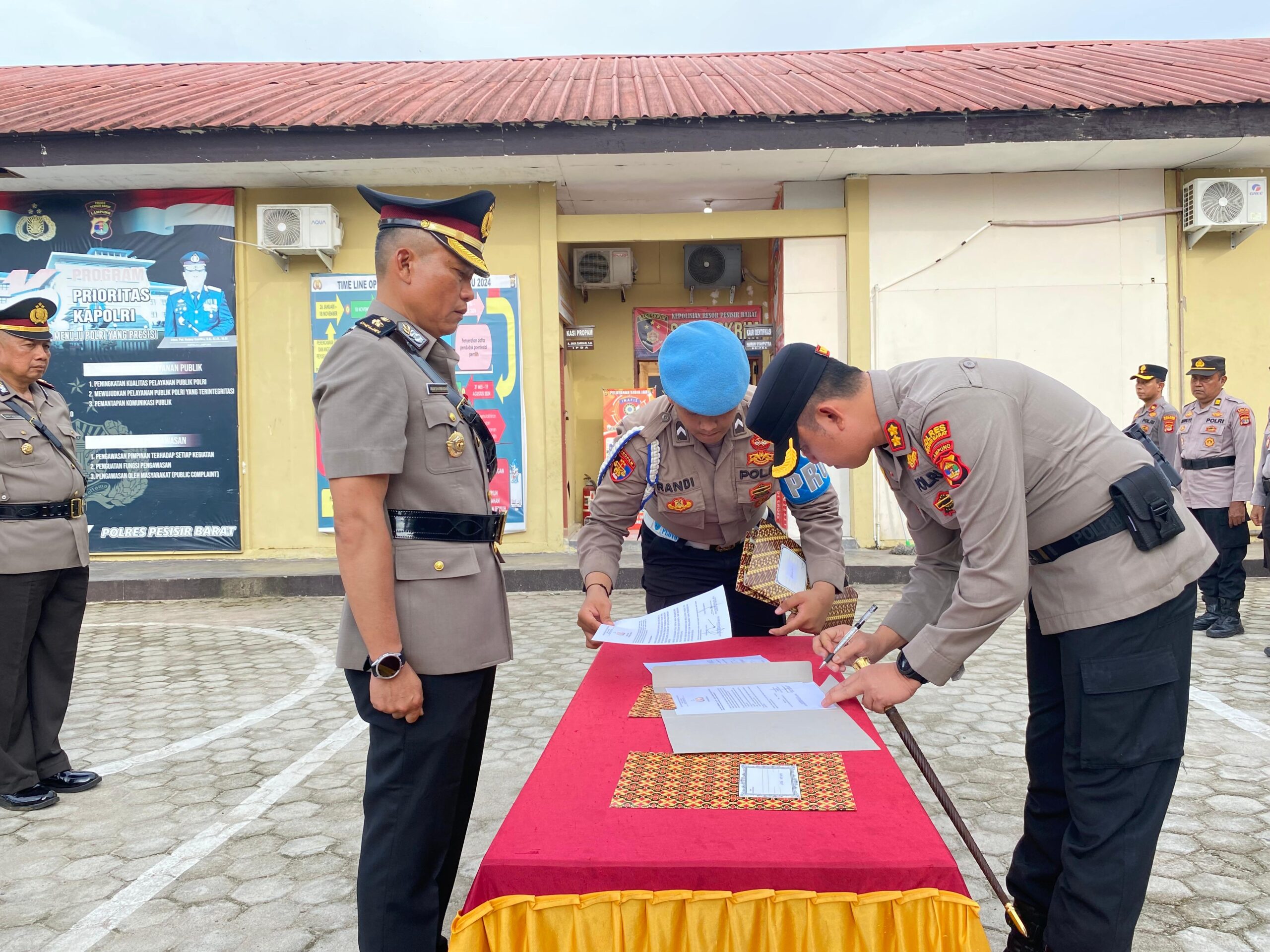 Upacara berlangsung khidmat dan dihadiri oleh seluruh jajaran Polres Pesisir Barat serta para Ibu Bhayangkari yang turut mendampingi. Serah terima jabatan ini diharapkan dapat memberikan energi baru dalam meningkatkan pelayanan dan keamanan bagi masyarakat di wilayah hukum Polres Pesisir Barat.