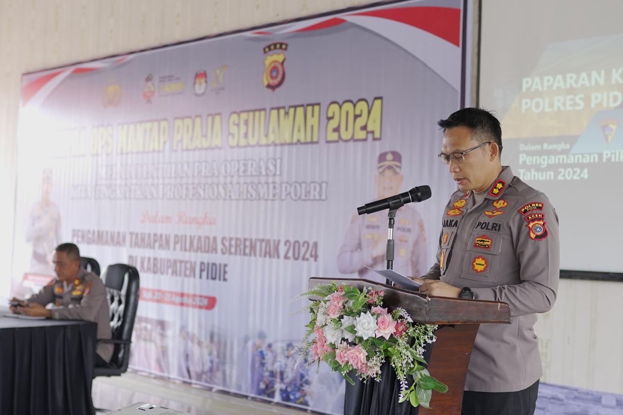 Latpra Ops Mantap Praja Seulawah 2024, ini bertujuan untuk meningkatkan pengetahuan dan kemampuan personel Polri dalam menjaga keamanan dan kelancaran penyelenggaraan pilkada serentak di Kabupaten Pidie.