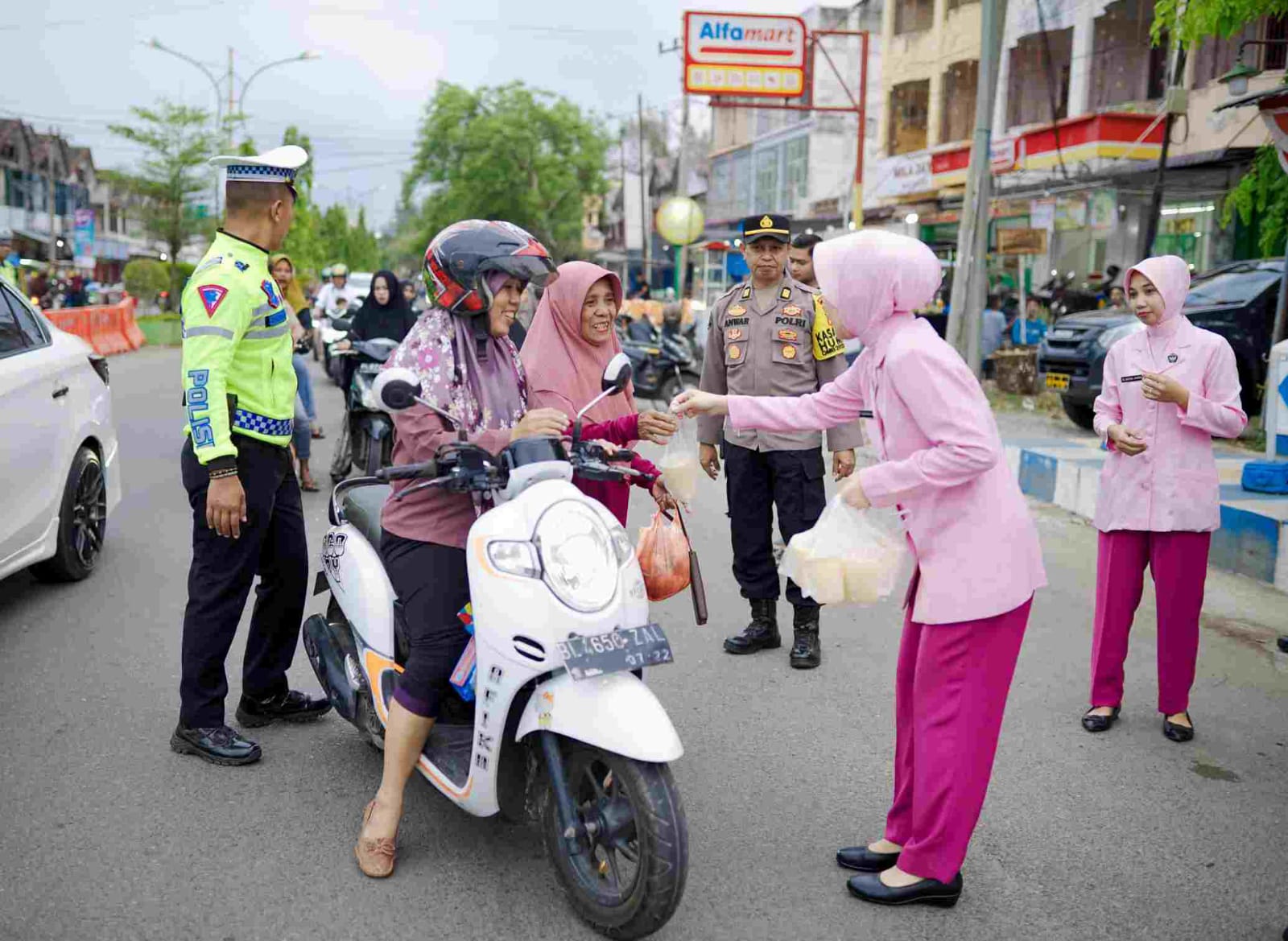 Pembagian takjil gratis ini dipimpin langsung oleh Kapolres Pidie, AKBP Imam Asfali, SIK, MH serta turut didampingi Ketua Bhayangkari Cabang Pidie Ny Salma Imam Asfali beserta pejabat utama, personel Polres Pidie dan Pengurus Cabang Bhayangkari Pidie.