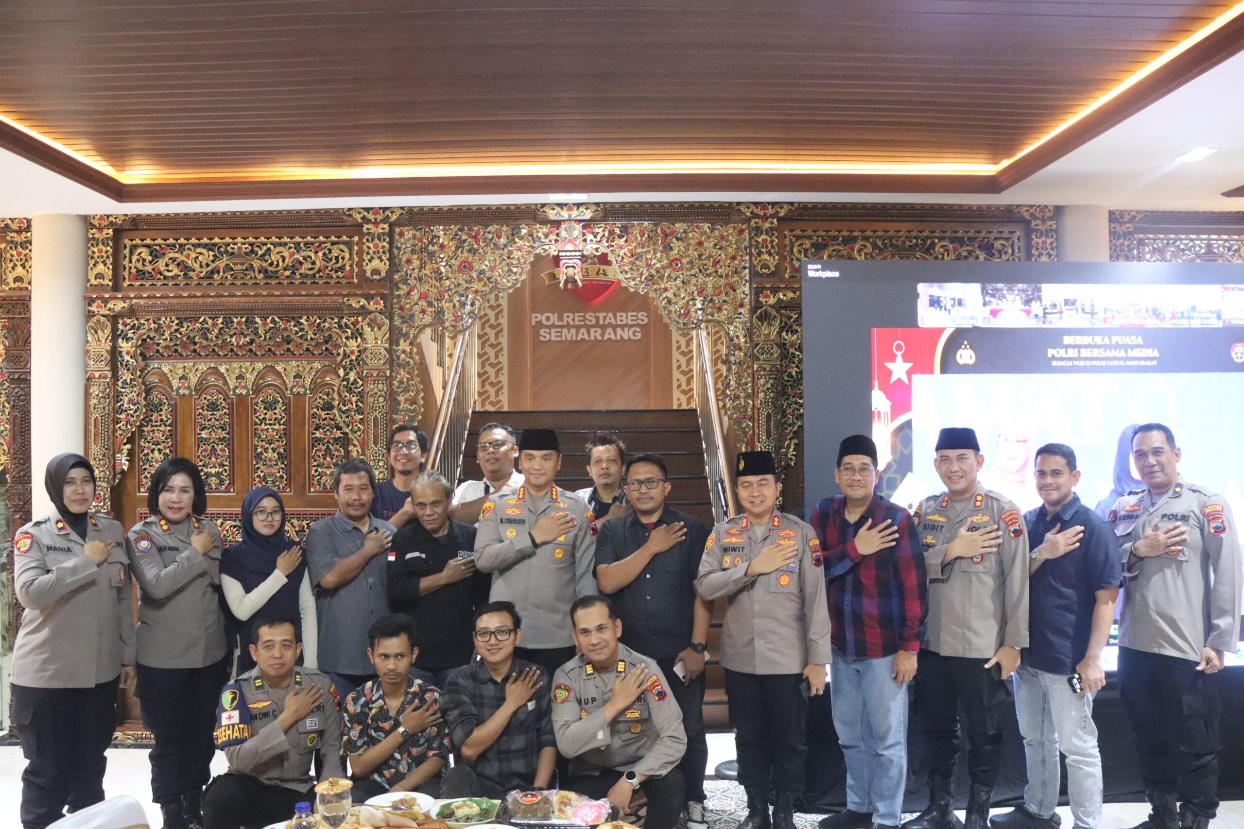 Kota Semarang, Jawa Tengah – Kapolrestabes Semarang Kombes Pol. M. Syahduddi, S.I.K., M.Si, menggelar buka puasa bersama insan pers, redaksi, dan jurnalis pada Kamis, 13 Maret 2025, dalam rangka silaturahmi sekaligus mempererat tali silaturahmi antara kepolisian dan media. Acara yang bertempat di lobi Mapolrestabes Semarang ini merupakan bagian dari kegiatan serentak yang dipimpin Wakapolri Komjen Pol Drs. Ahmad Dofiri, M.Sc. yang diikuti seluruh jajaran Polda dan Polres di seluruh Indonesia melalui aplikasi Zoom.