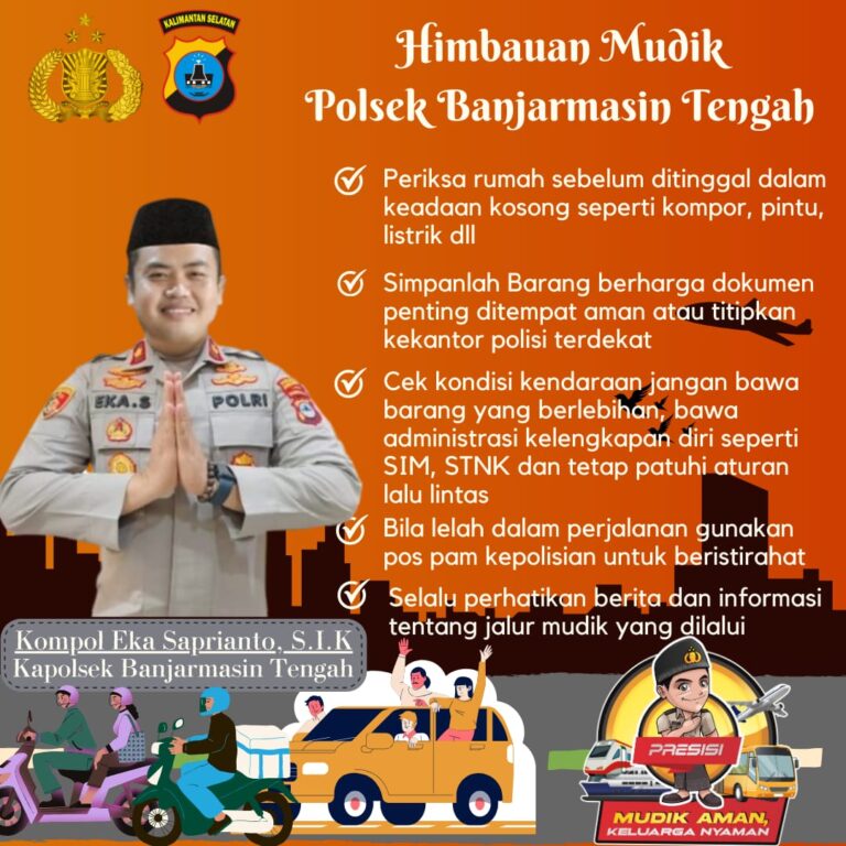 Banjarmasin, – Selasa 25 Maret 2025, Polsek Banjarmasin Tengah mengeluarkan imbauan kepada masyarakat untuk memastikan keamanan rumah yang ditinggalkan serta keselamatan di perjalanan.
