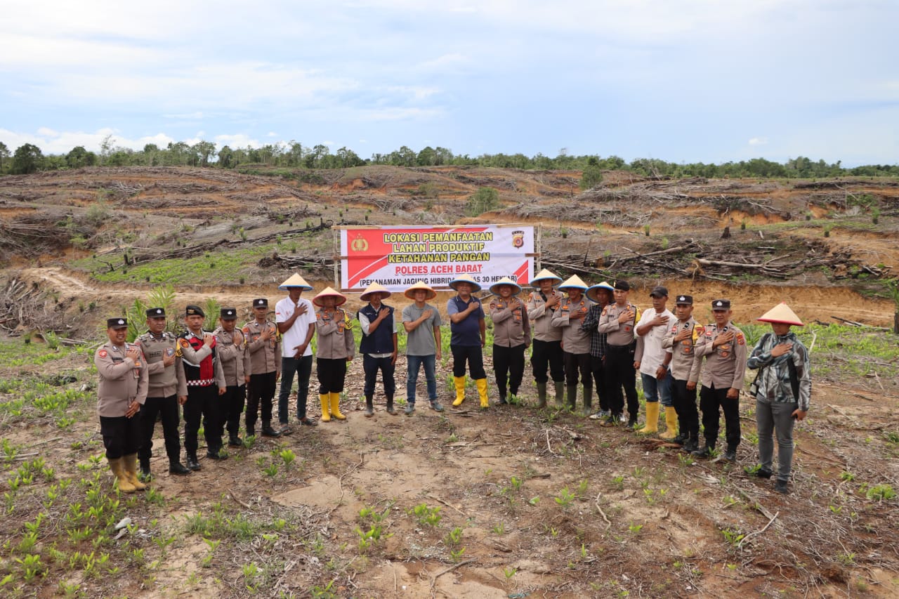 Banda Aceh – Karo Sumber Daya Manusia (SDM) Polda Aceh Kombes Riyadi Nugroho meninjau lahan produktif program ketahanan pangan di Desa Simpang Teumarom, Kecamatan Woyla Barat, Kabupaten Aceh Barat, Minggu, 17 November 2024.