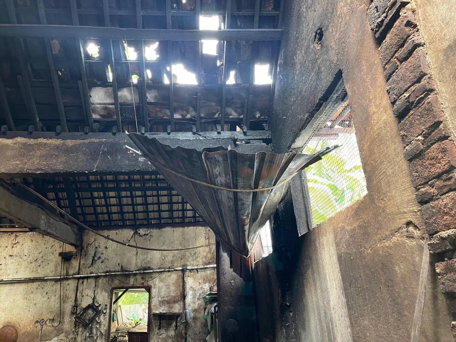 Mereka selanjutnya mengecek ke dalam dapur pengolahan tahu dan didapati wajan di atas tungku kayu sudah terbakar dan menjalar ke atap bagian dapur.