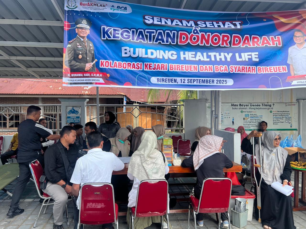 BIREUEN – Unit Transfusi Darah (UTD) RSUD dr. Fauziah Bireuen kerap menghadapi keterbatasan stok darah, sementara kebutuhan pasien, khususnya penderita thalasemia dan mereka yang menjalani hemodialisis, terus meningkat. Menyadari pentingnya ketersediaan darah, Kejaksaan Negeri (Kejari) Bireuen bekerja sama dengan BCA Syariah KCP Bireuen menyelenggarakan kegiatan donor darah pada Jumat (12/09/2025) di halaman kantor Kejari Bireuen.