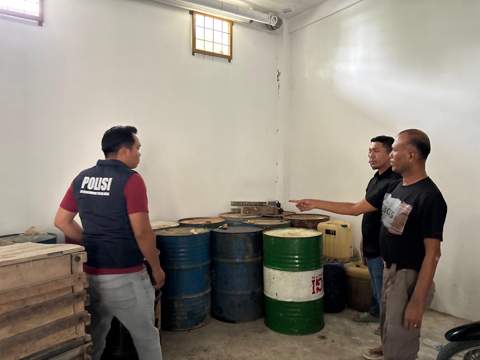 3 drum berisi minyak putih jenis Pertalite yang telah dioplos