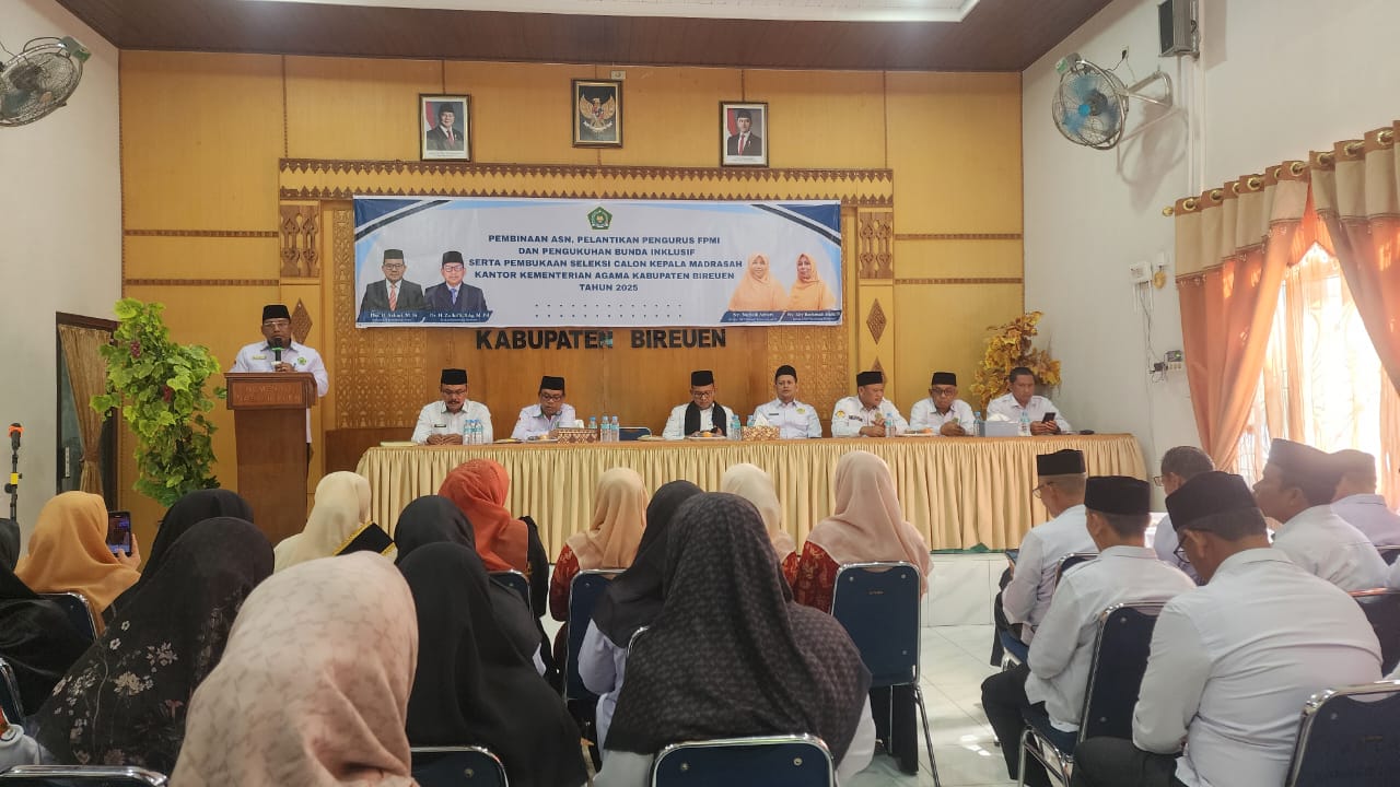 BIREUEN — Kantor Kementerian Agama (Kemenag) Kabupaten Bireuen menggelar kegiatan pembinaan bagi Aparatur Sipil Negara (ASN) Pegawai Pemerintah dengan Perjanjian Kerja (P3K) dan Calon Pegawai Negeri Sipil (CPNS) tahun 2024. Kegiatan ini berlangsung di Aula Kemenag Bireuen, Rabu (25/6/2025).