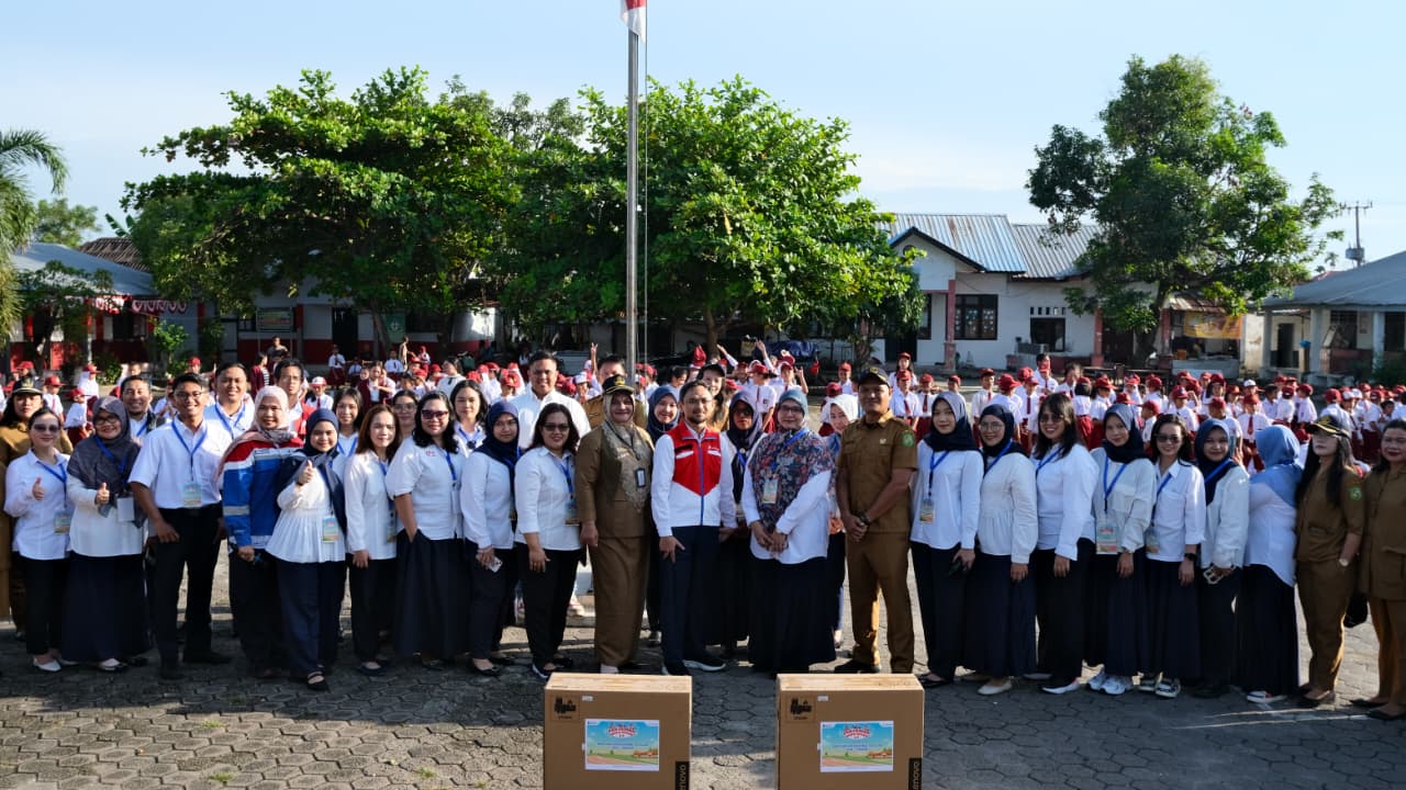 Tidak hanya di Medan, suasana ceria juga dirasakan ratusan siswa-siswi Sekolah Dasar Negeri (SDN) 7 Muara Satu, Kecamatan Muara Satu, Kota Lhokseumawe, Aceh. Para siswa begitu bersemangat mengikuti berbagai materi dari Perwira Pertamina PHE NSO.
