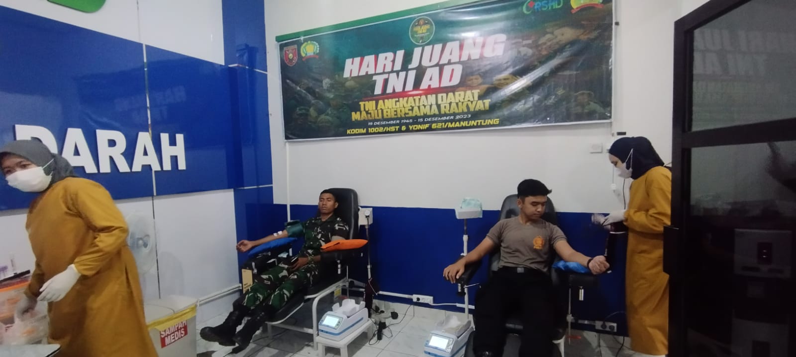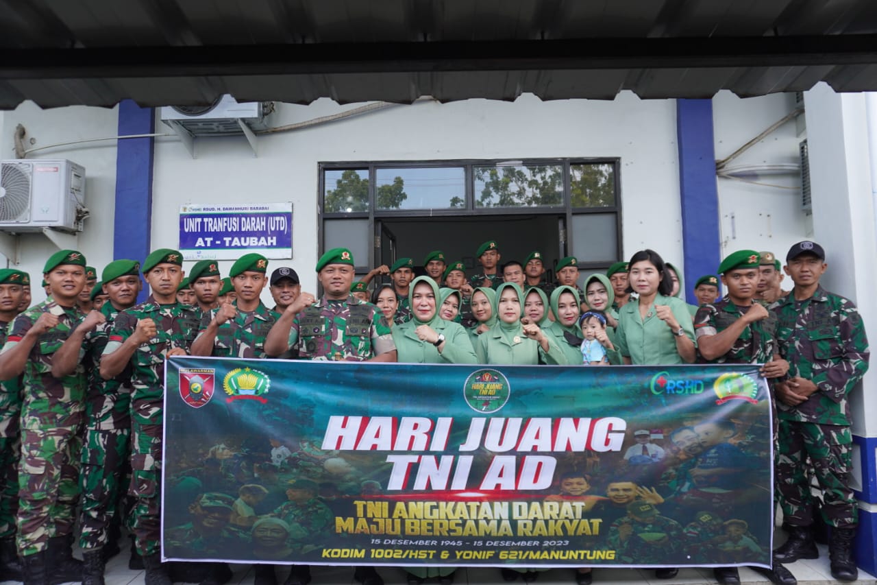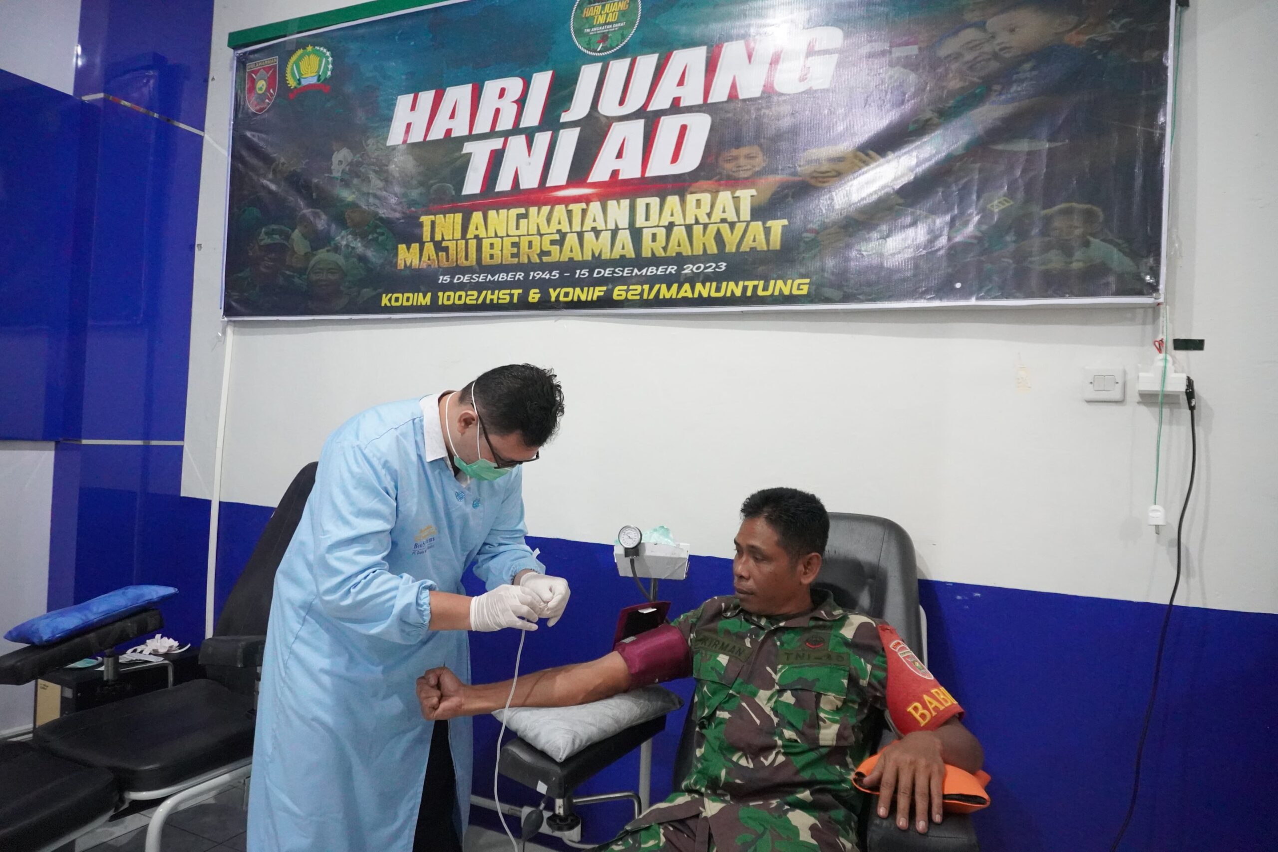 Barabai, Kalimantan Selatan – Dalam rangka Hari Juang TNI AD tahun 2023, Kodim 1002/HST dan Yonif 621/Manuntung mengadakan bakti sosial donor darah di Unit Transfusi Darah Rumah Sakit Damanhuri Barabai, Jalan Murakata Barabai, Kabupaten Hulu Sungai Tengah, pada Selasa (12/12).